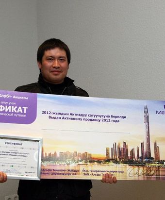 Согласно условиям акции «Mega Клуб» для лучших продавцов торговых точек, брендированных салонов и MegaCom экспресс-центров (МЭЦ) были преподнесены бонусы, среди которых фирменная сувенирная продукция, а главный приз - сертификат на получение туристической путевки в Объединенные Арабские Эмираты. Лучшим дилерам сотовой компании дополнительно вручили мотивационный сертификат «Активный продавец 2012 года».